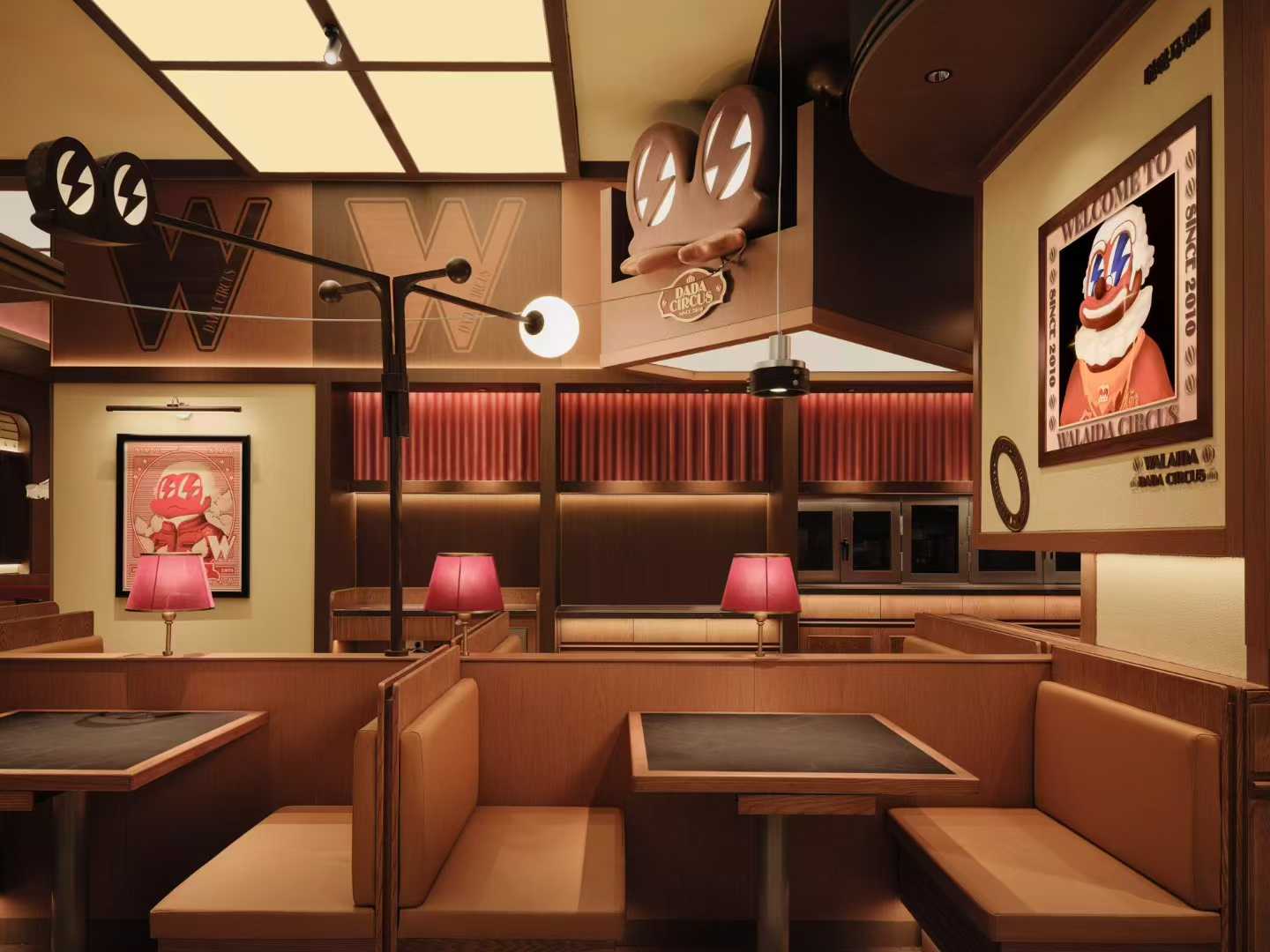 一年工作步入收尾,同事团建既要实现大口干饭的满足感,也要兼顾氛围营造与团队互动。蛙来哒8.0超级马戏团主题店无疑是绝佳之选,把用餐空间打造成沉浸式梦幻异想世界,魔法售票处造型的门头吸睛十足,红色大幕布搭配灵动蛙形木偶装置,复古菲林胶片装饰点…